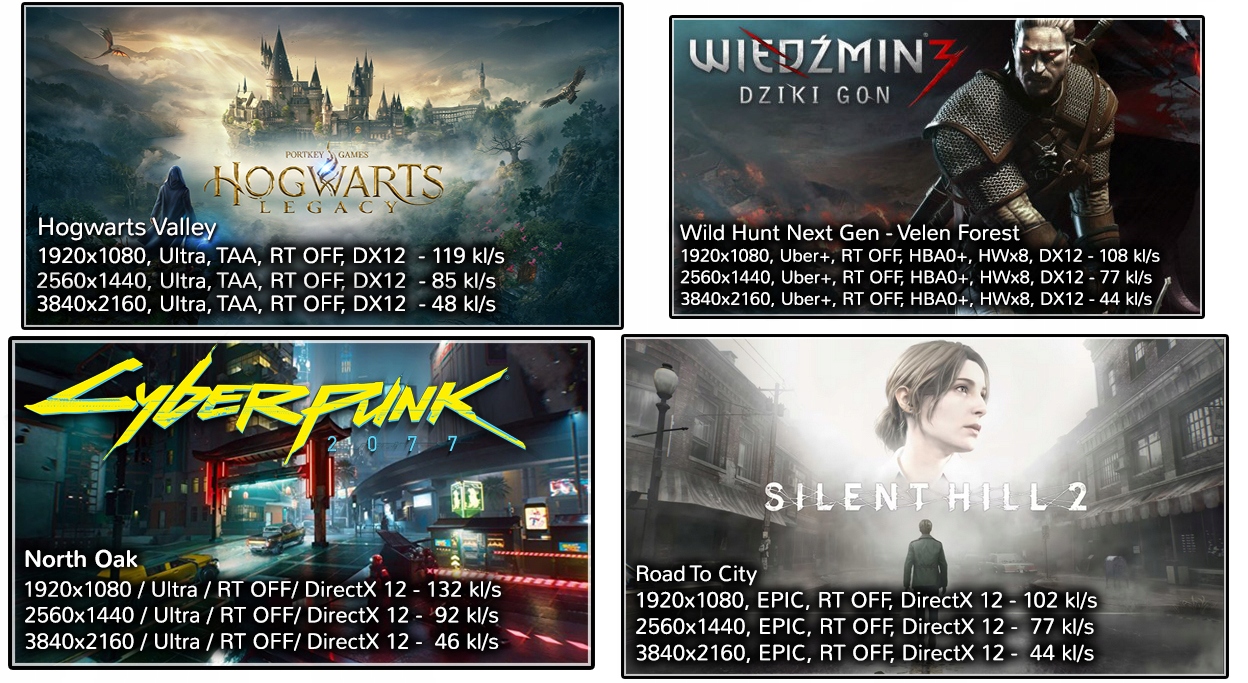 GeForce RTX5070Ti - tu chyba nie trzeba żadnych rekomendacji, moc w połączeniu z technologią DLSS4 - to robi grę! Poniżej przedstawiamy szacunkową, średnią ilość klatek oraz ustawienia detali w rozdzielczości Full HD, WQHD oraz 4K. Jak widzisz wszystkie gry chodzą płynnie, w ultra ustawieniach, również w rozdzielczości 4K! Karta będzie też wybitnie wspierać wszelkie procesy w zaawansowanych programach graficznych.