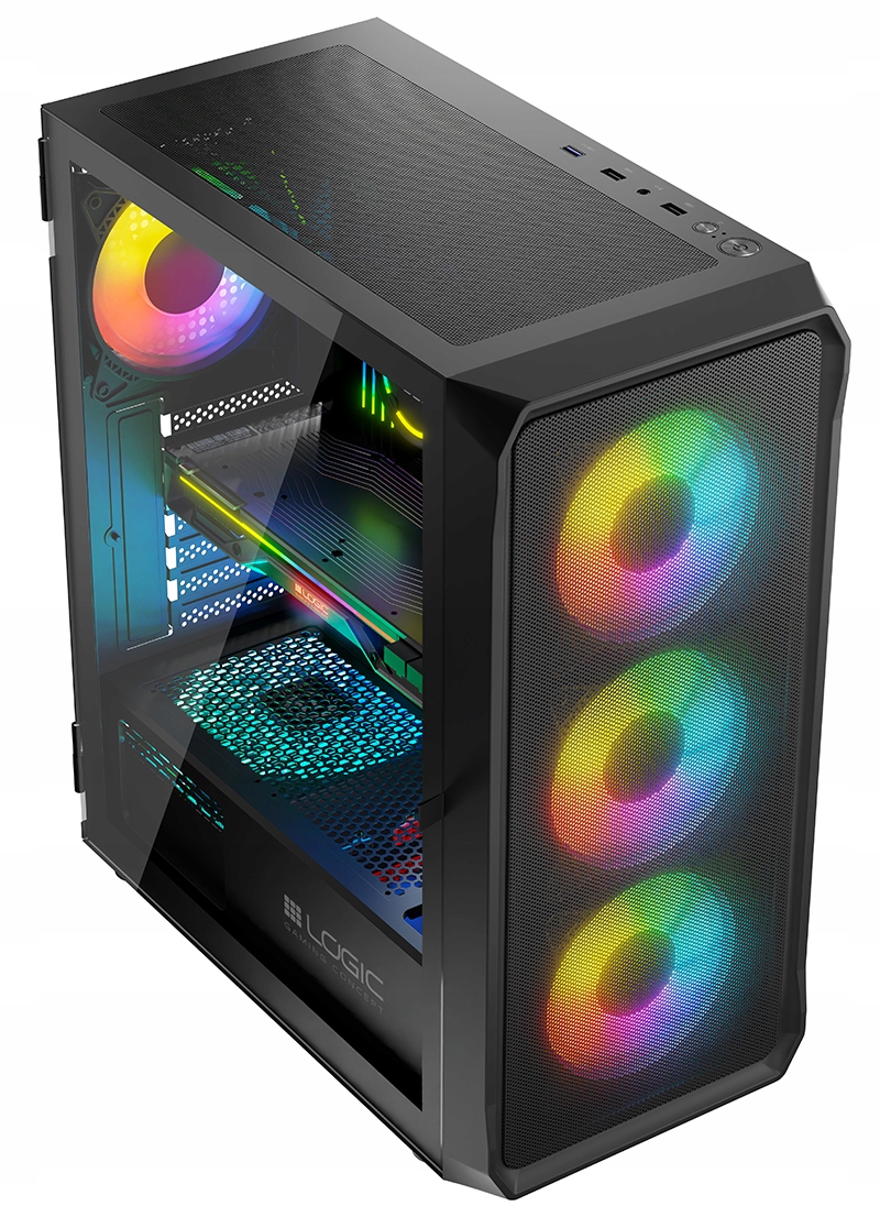 - obudowa LOGIC PORTOS MIDI ARGB - doskonale zaprojektowana obudowa gamingowa, która ma wszystko czego potrzebujesz. Panel boczny z hartowanego szkła, aż trzy wentylatory 120 mm na froncie i jeden 120 mm z tyłu obudowy, możliwość montażu kart grafiki do 340 mm oraz maksymalna wysokość chłodzenia procesora do 155mm, możliwość montażu chłodzenia wodnego do 240mm, możliwość montażu 5 dysków SSD i 1 HDD lub 4 dyski SSD i 2 HDD, trzy filtry przeciwkurzowe, na top panelu wyjścia 1xUSB3.0 oraz 2xUSB2.0, wymiary 390×200×450 mm.